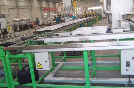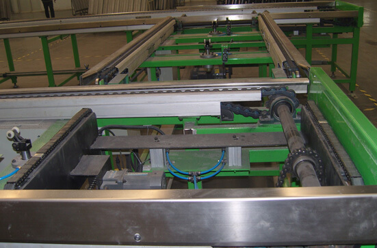 在汽車零部件行業(yè)中,由于水箱和中冷器的種類多和規(guī)格差異大,加工工序復(fù)雜無序,致使生產(chǎn)效率低,人工成本高,廢品率高,我司對某企業(yè)通過詳細的物料調(diào)查,數(shù)據(jù)收集,并與企業(yè)日本技術(shù)專家反復(fù)溝通,前后經(jīng)歷1年半時間,總體綜合規(guī)劃設(shè)計,反復(fù)6次修改調(diào)整,企業(yè)量身定做,生產(chǎn)制作以倍速鏈輸送線為主的綜合性輸送線。